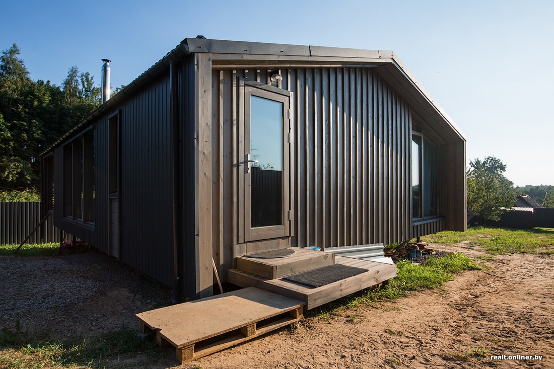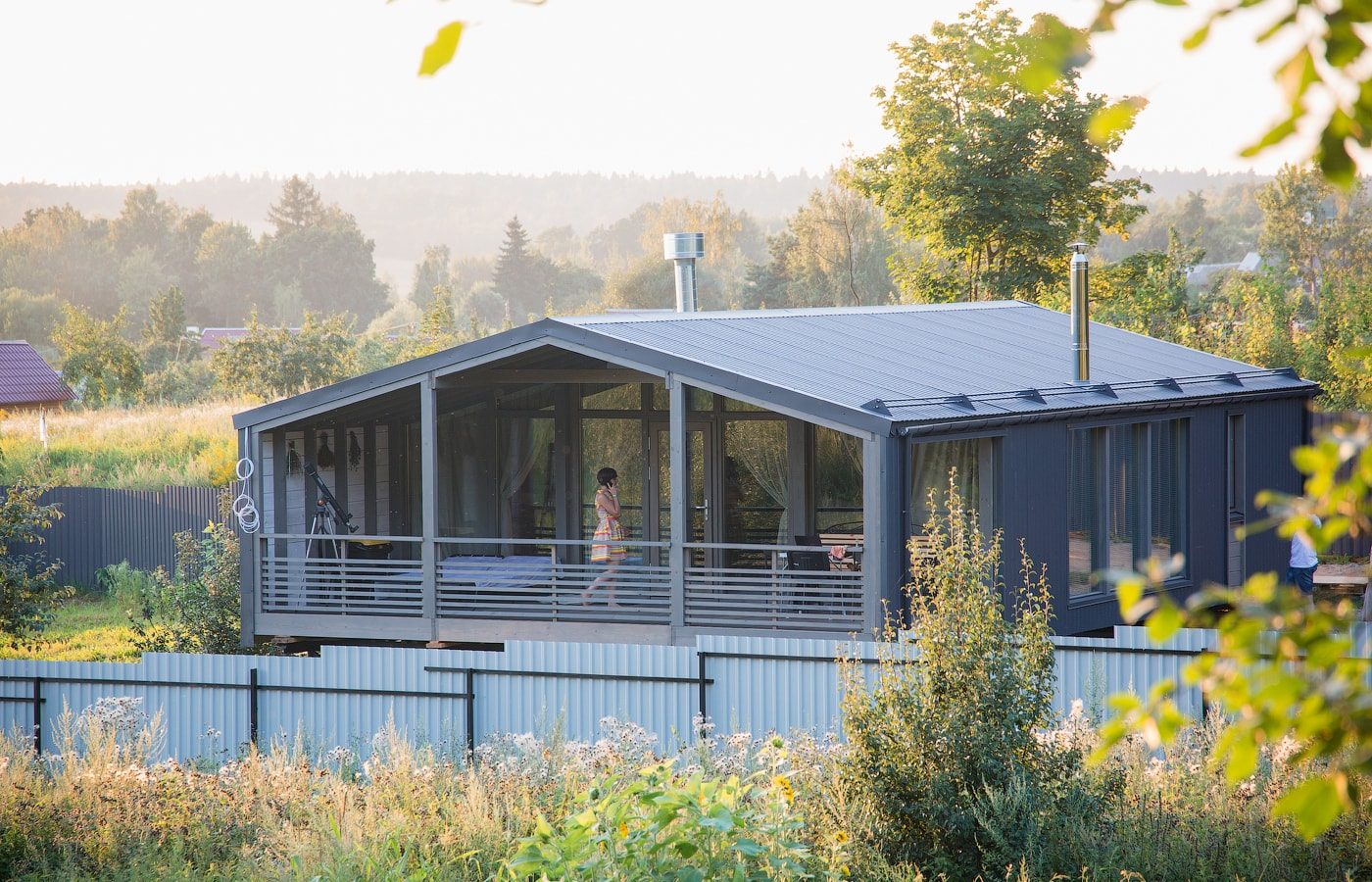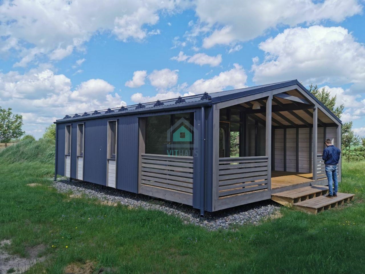 We recommend that Dublhaus 65 be completed with a large veranda in front and a small in rear for access to the backyard from the bedrooms. Different projects include entrances from different sides: front through the veranda, behind or on the side – through the high module.