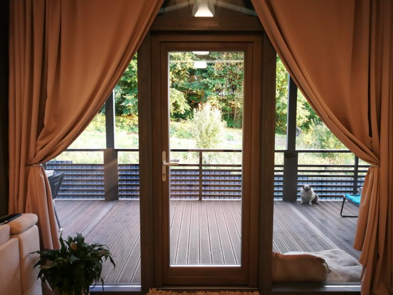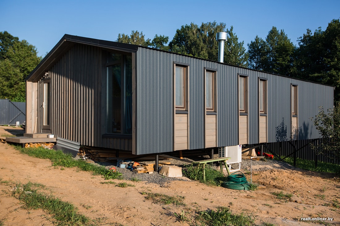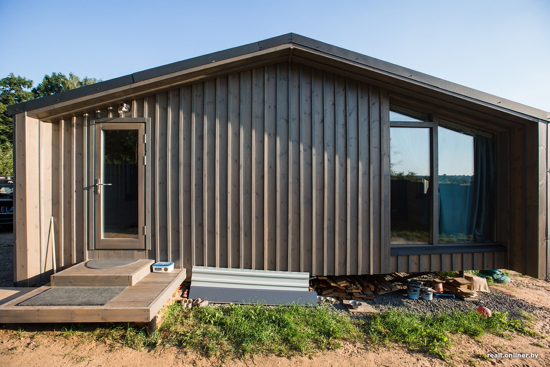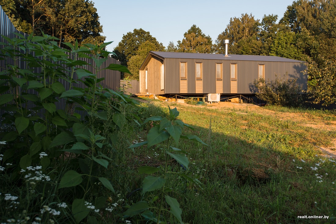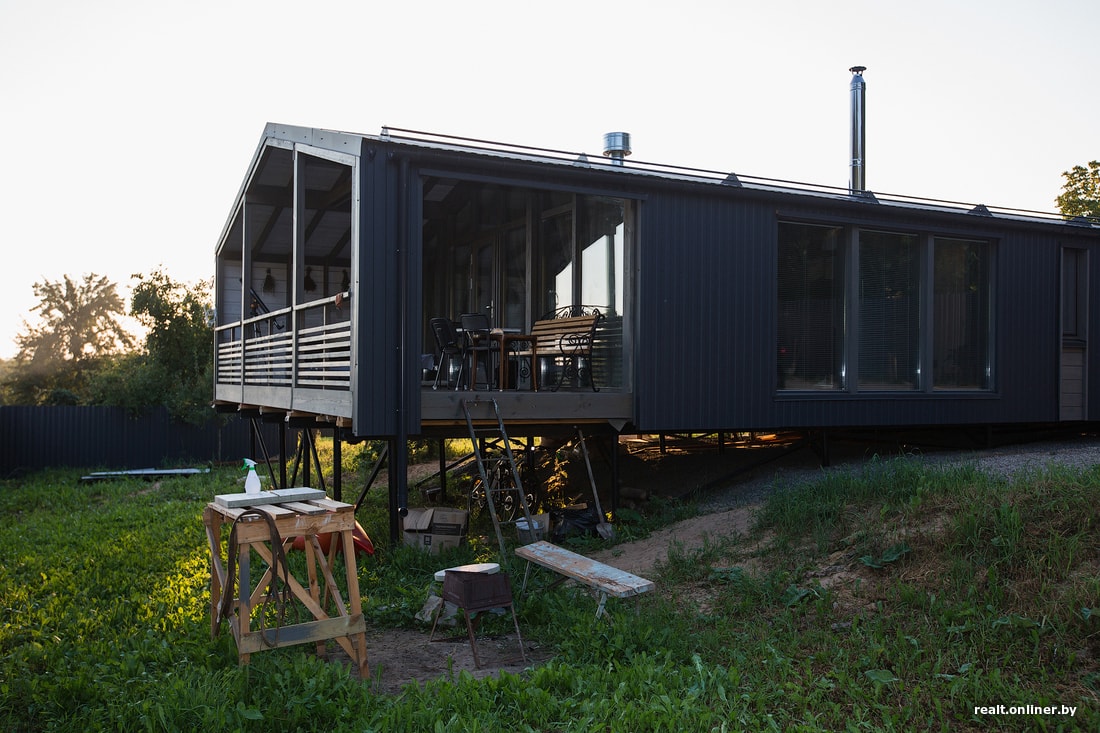 We recommend that Dublhaus 65 be completed with a large veranda in front and a small in rear for access to the backyard from the bedrooms. Different projects include entrances from different sides: front through the veranda, behind or on the side – through the high module.
