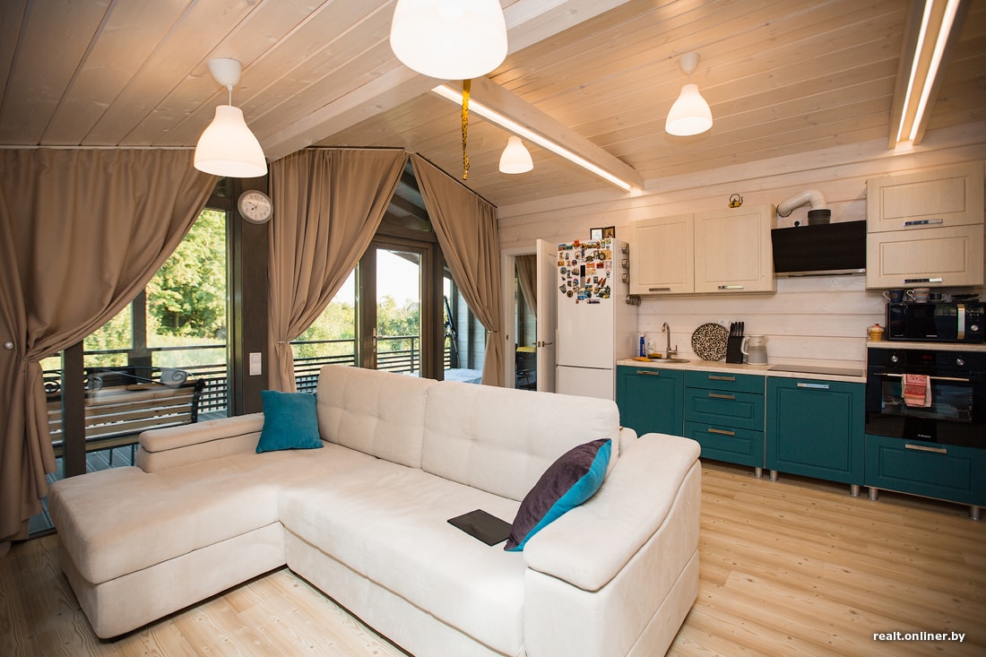2 bedrooms, an entrance hall, a bathroom and a spacious kitchen-studio with panoramic glazing on two sides were located on 65 m2.