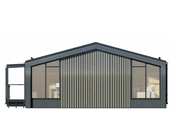 Тип-6: кровля металлопрофиль, фасад металлопрофиль 1/2 + дерево горизонтально 1/2.